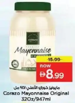 2Nesto Corazo Mayonnaise Original offerCorazo Mayonnaise Original 32 Oz / 947 ml NestoAED 15.99AED 8.99AED 7.00 Discount22 January 202626 January 2026 View offer