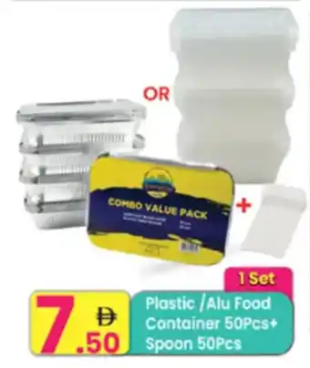 This offer is available in various stores, view all products to get the cheapest Plastic / Aluminium Food Container + Spoon. If you'd like to find out whether this product has a bigger discount in another store, check the category 'Supermarkets'. You may also find these offers interesting: Khaleej Pack Aluminium Food Container, Hotpack Aluminium Container & Glass Food Container.